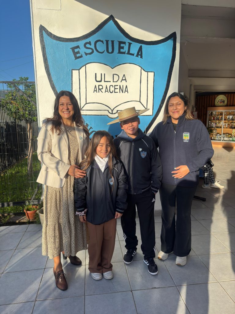 La pareja de estudiantes Josefa Herrera y Rolando Abuyeres, de la Escuela Ulda Aracena González de Nogales, junto a la Coordinadora Comunal de Extraescolar María José Oyanedel, se encuentran viajando a la VII Muestra Nacional de Cueca Escolar de Talca.